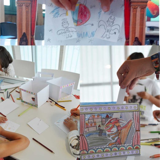 Os obxetivos do obradoiro de teatriños de papel é ensinar ós rapaces de maneira lúdica e creativa as partes estructurais dun EMAKI clásico (teatro lumínico tradicional xaponés a partir de pergamiños ilustrados) e transformalo nun xoguete, do cal se poida inculcarlles a paixón de inventar e contar historias a través da ilustración e a imaxinativa persoal de cada un. Os nenos crean historias a partir de lecturas que teñan feito ou ben inventan narrativas novas.